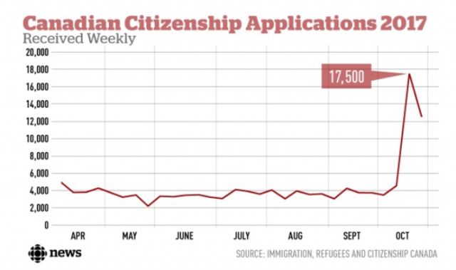加拿大移民部日前表示,入籍新法案(C6法案)于10月11日正式实施后,申请入籍的人数大幅上升。在条件放宽的前六个月,移民部平均每周收到3653份申请。而10月11日后的一周时间,申请数量激增到1.75万份,接下来的第二周也有约1.25万人申请入籍。移民部发言人表示,缩短对申请者在加拿大居住时间的要求,让申请者能够更灵活地达到申请公民的要求,也鼓励更多移民入籍成为加国公民。这项政策修改尤其能帮助那些在已经在加拿大开始新生活的移民,更快地成为公民。据统计,最近这些年,平均每年有20万人递交了加拿大公民申请。政府也承诺尽量把处理申请的时间控制在12个月以内。