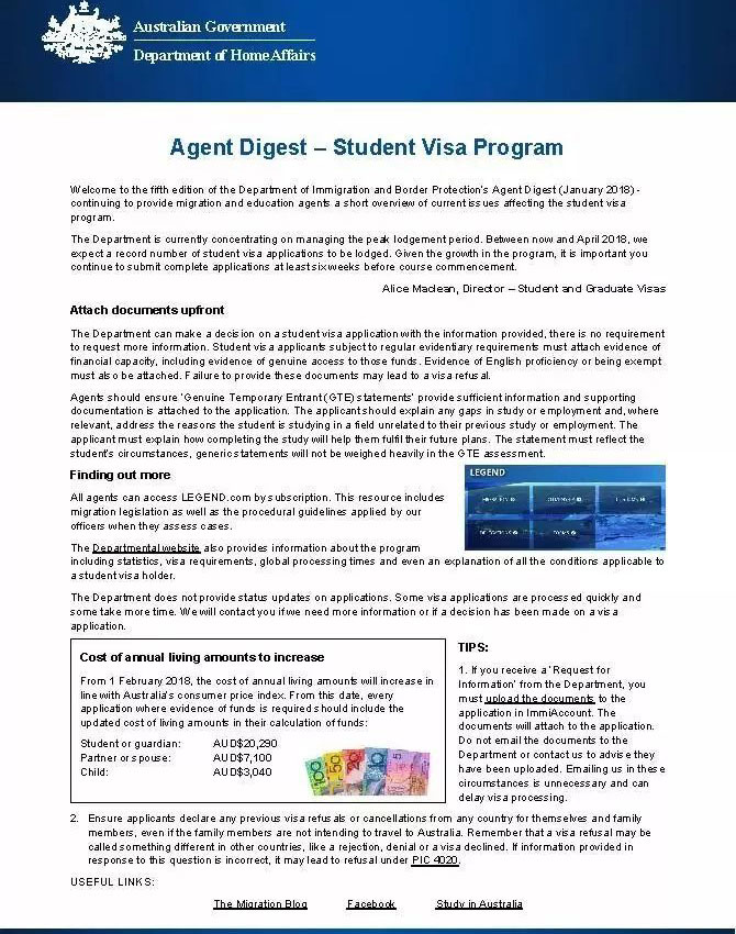 澳洲移民局近期更新了对于学生签证的各项要求。总体来说,这次改动可以看出澳洲正在把签证的审核做到更加严格和严谨。(1)从现在开始一直持续到2018年4月将迎来澳大利亚学生签证高峰期,由于签证申请数量将大幅增长,建议学生签证申请至少要在开课前6周提交。(2)从2018年起,申请学生签证的同学,如果被判定为常规类申请,则必须提供完整的材料。如果材料不全,将不会再提醒申请人补交材料,并且有可能直接拒签。必须提供的材料如下:财产证明(需证明可以动用这些财产用于留学);英语成绩证明或免英语要求的证明。(3)GTE为“真实临时入境申明”,是每个来澳洲来留学的同学都必须提供的。移民部特别强调,GTE声明必须包含以下要点:你过去的学习与工作情况,包括有无间隔年,间隔时间有多久;如果来澳学习的专业与你过去的学习背景或工作领域不相关,请解释原因;解释在澳洲完成学业将如何帮助你实现未来的人生计划。(4)从2月1日起,移民部规定的最低生活费将小幅上调,大家在提供财产证明时需要按照新标准来准备。具体来看:学生或监护人在澳洲每年所需的资金担保中生活费上调为20,290澳元;学生的伴侣或配偶每年在澳洲生所需的花费为7,100澳元;学生的子女每年在澳洲所需生活费为3,040澳元。(5)根据澳洲移民条款PIC4020规定,如果你或你的家庭成员,之前有过任何国家的拒签史,请务必告诉移民部,否则可能会因为提供不真实的材料导致签证拒签。