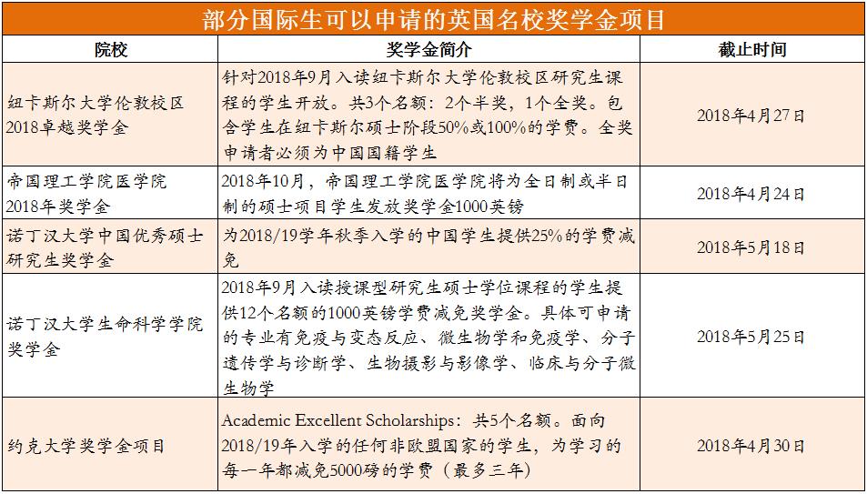 九.英国部分大学4、5月将陆续截止奖学金申请