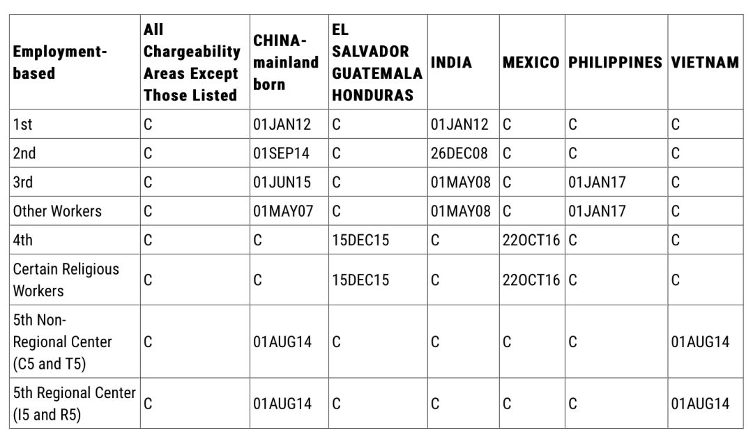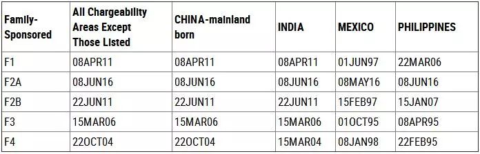 5月10日,美国国务院签证办公室发布了6月的签证排期公告,EB-5签证排期截止日前进到2014年8月1日,表B则原地踏步。亲属移民“绿卡批准排期”,中国申请人的情况为——F-1类:维持在2011年4月8日;F-2A类:由2016年6月1日前进到2016年6月8日;F-2B类:由2011年5月15日前进到2011年6月22日;F-3类:由2006年2月1日前进到2006年3月15日;F-4类:由2004年10月1日前进到2004年10月22日。职业移民“绿卡批准排期”,中国申请人的情况为——EB-1维持在2012年1月1日;EB-2维持在2014年9月1日;EB-3维持在2015年6月1日;EB-4有名额;EB-5由2014年7月22日前进到2014年8月1日。