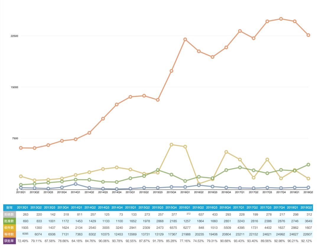 (2)审批数为3,649,比上一季度增加了903;