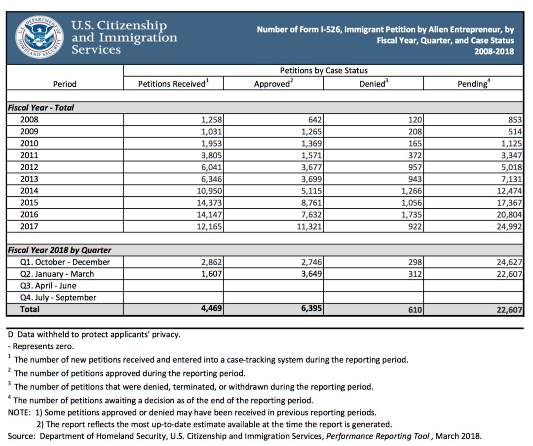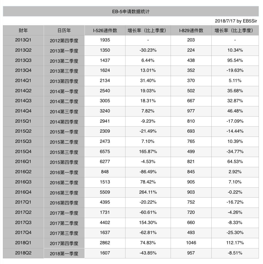 最新消息, 局公布了2018财年第二季度(2018年1月1日至3月31日)的EB-5案件递件和审批数据。