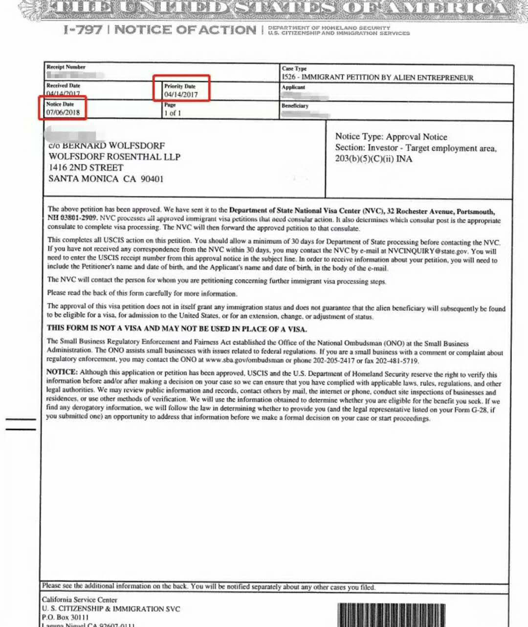 集团连续收到了三封客户的I-526批准信,最快一个获批只用了14个月,速度比