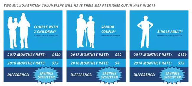 从2018年1月1日开始,年收入12万以下的BC家庭,MSP供款减半。这意味着,有200万BC省民可以每年节省450元。
