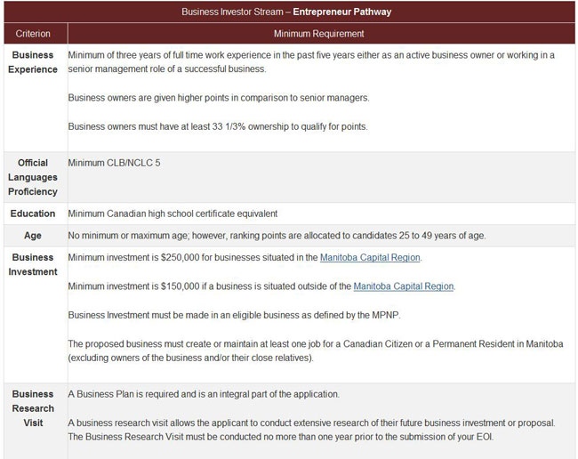 (1)Entrepreneur Pathway(企业家途径)。各地有意向和能力前往曼尼托巴、建立、购买生意或成为现有生意合作伙伴的世界各地的合格商人。