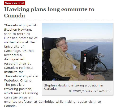 那么,为何加拿大能吸引霍金这样的物理“大神”呢?古话说“良禽择木而栖”,种好了梧桐树,自然招得来凤凰。加拿大对基础科学的重视和对科研的大力投入,无疑是霍金意欲出走该国的主要原因之一。2010年,加拿大的前总理哈珀曾会见过霍金,称赞其为“加拿大科学家的灵感源泉”,并当场宣布未来5年投资4500万美元,用于基础科学博士后奖学金。这样满满的诚意,让人很难不动心。