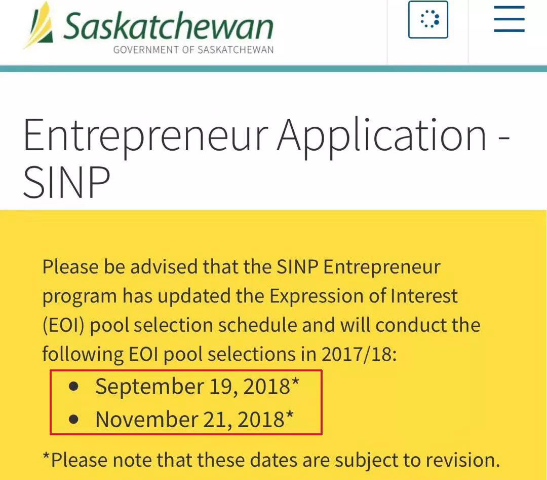 温馨提示:萨省商业移民项目今年还有两轮邀请机会,分别定在9月19日和11月21日。想要赶上今年筛选的客户朋友,先要进行移民评估,然后要去商务考察,准备资料,时间可谓相当紧迫……