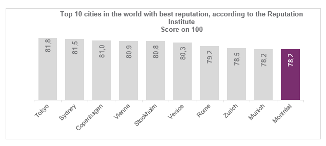 根据评估结果来看,蒙特利尔市力压温哥华和多伦多,首次跻身全球十大最负盛名城市,同时成为加拿大最负盛名城市第一名。