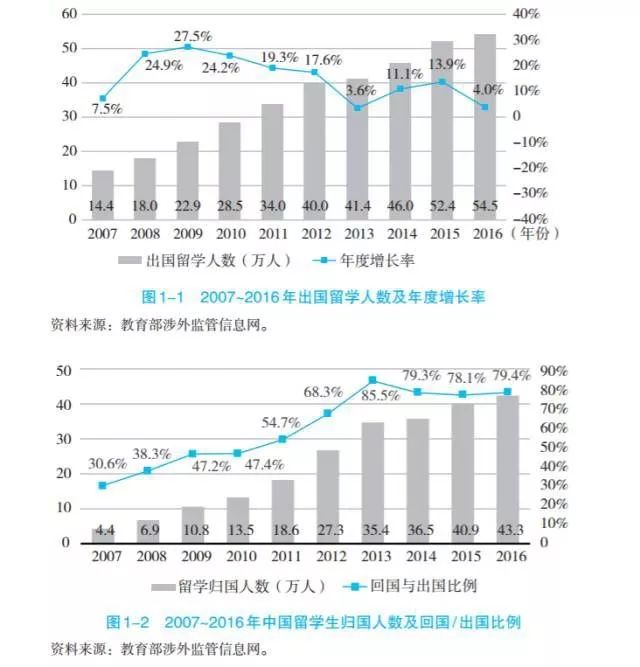 2018年3月底,中国教育部统计,2017年中国出国留学人数首次突破60万大关,达到了60.84万人,同比增长11.74%。其中自费留学共54.13 万人,占比88.97%,持续保持世界最大留学生生源国地位。