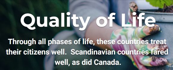 排行榜认为,生活质量,不仅是洁净的食物,舒适的住房,还需要有优质教育和医疗,还得好找工作。加拿大在生活质量上,胜过瑞典、丹麦这样的高福利国家。这是加拿大连续第四年在提供优质生活方面排名第一。