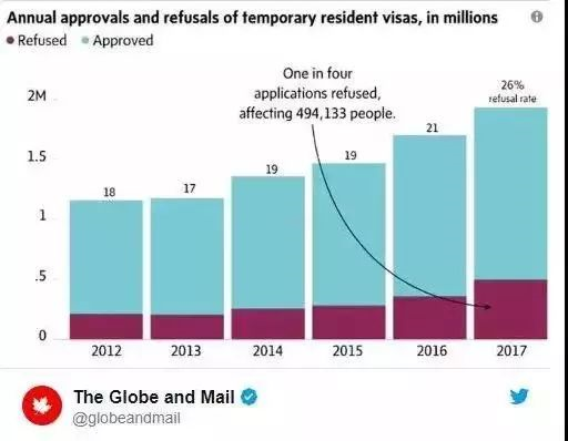 很多人都知道,加拿大不管是10年签还是留学签都有一定难度,可你知道到底有多难么?下面这组加拿大移民局发布的官方数据让大家都大吃一惊~