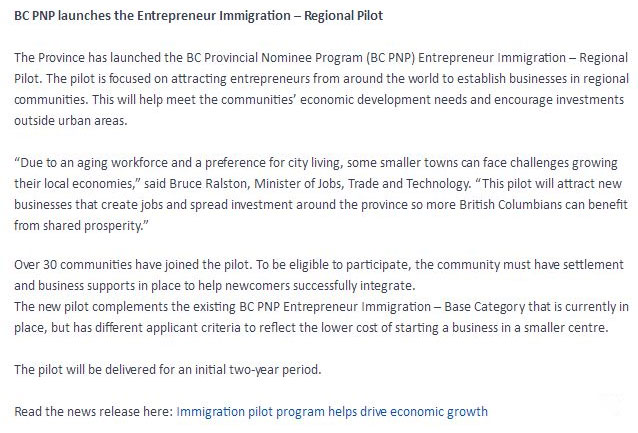半价就能移民加拿大最热门省份BC省的机会,快来了解一下!去年11月底,加拿大BC移民局公布了即将推出BC企业家移民-区域试点项目的消息,而就在3月15日,BC移民局更新了该项目的申请细节,包括申请指引、社区名单及EIR打分细节等。