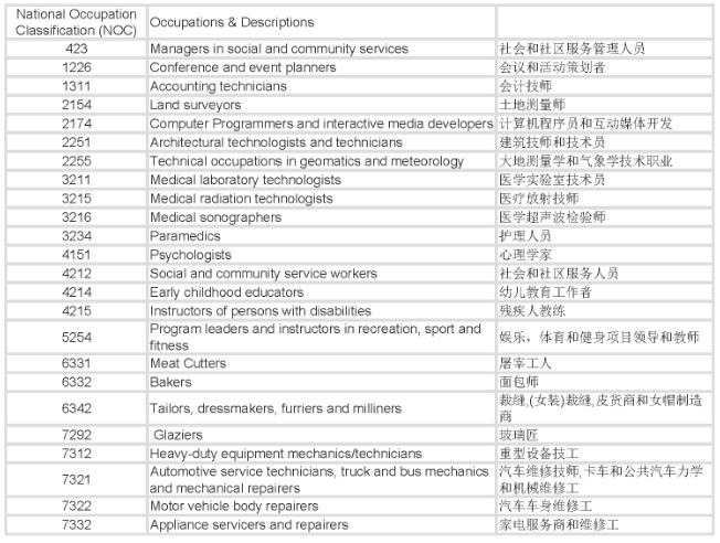 2019年4月4日,加拿大萨省针对该省紧缺职业,再次作出调整,新增了13项新职业,特别是NOC 2174 程序员、NOC1311 会计技师、NOC2251 建筑技师等预计备受欢迎的职业重回列表。