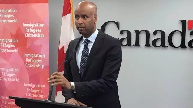 移民部长胡森在安大略省苏圣玛丽市召开新闻发布会。