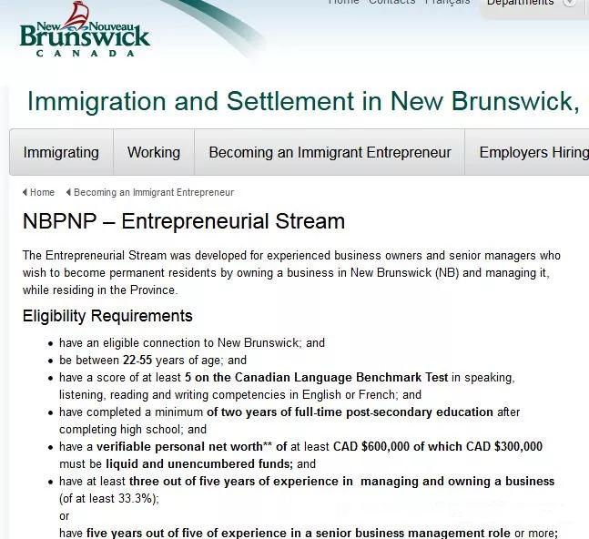 2018年10月17日,加拿大NB省移民局官网发布消息,NB企业家类PNP项目暂时性关闭。