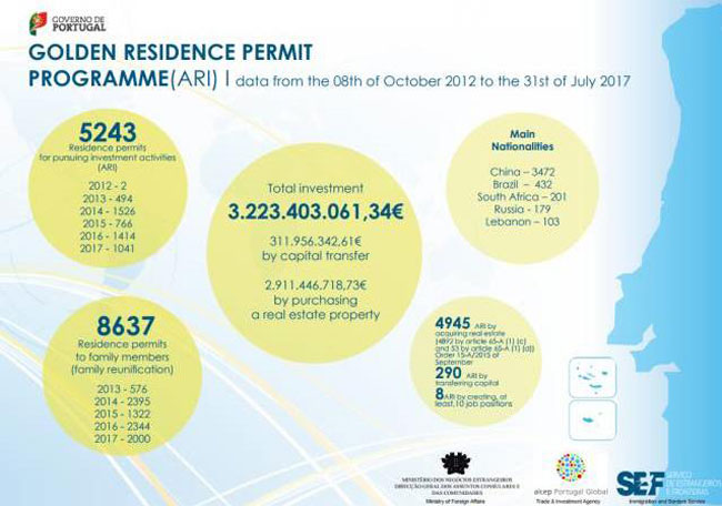 欧洲分公司提供的最新消息,8月8日,葡萄牙移民局(SEF)官方发布了截止到2017年7月31日黄金居留获批的最新数据。一起随小编来看看具体数据的分析吧。