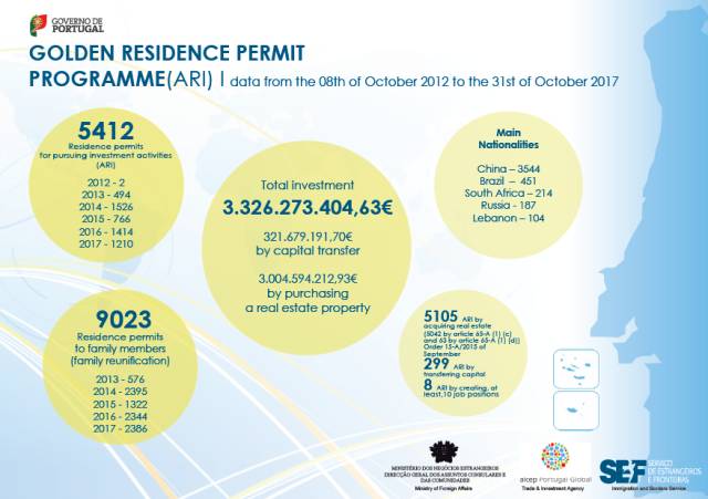 根据 欧洲分公司提供的最新消息,11月8日,葡萄牙移民局(SEF)官方发布了截止到2017年10月31日黄金居留获批的最新数据。