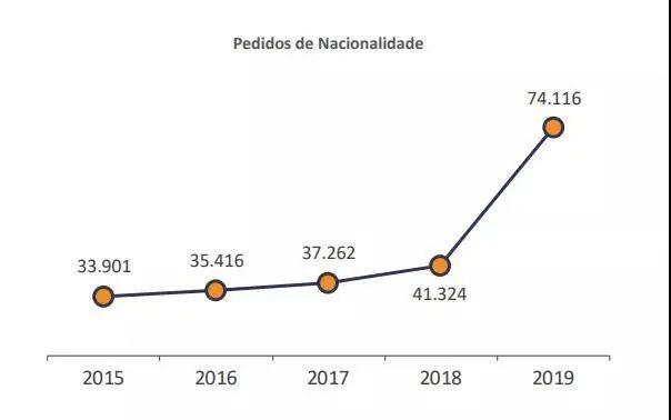 与之相对应的国籍申请方面,2019年,SEF共登记了74,116份葡萄牙国籍申请,与上一年度相比,也出现了大幅增长(+ 79.4%)。