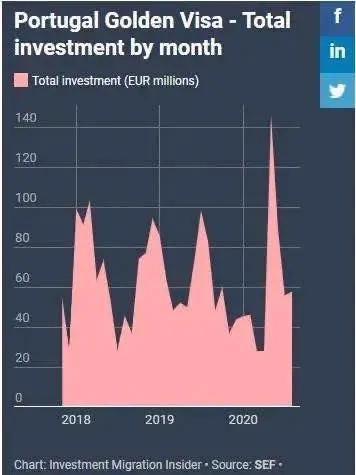 葡萄牙黄金签证——各月度投资额