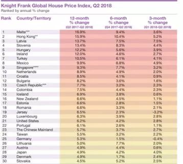 •房价涨幅世界第一。根据Knight Frank的最新数据,2017年第二季度-2018年第二季度,马耳他房价涨幅超过香港达到16.9%,位居世界第一。出租回报率可达6.8%,位居欧洲第三位。