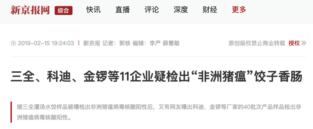对此,金锣、齐汇相关负责人在回复媒体采访时称,虽然未收到官方部门的通知,但公司也在配合相应部门检查,有具体结果将及时对外公布。
