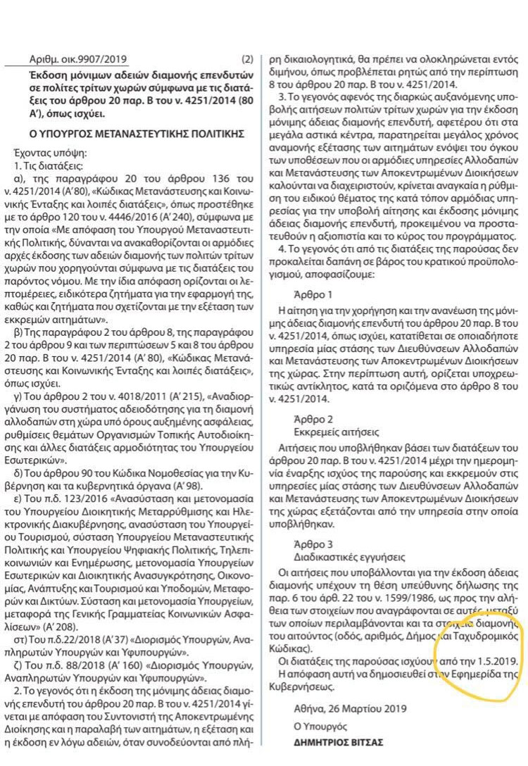 据这份政府公文称,希腊移民政策部颁布以下规定,其中涉及希腊投资移民的内容如下: