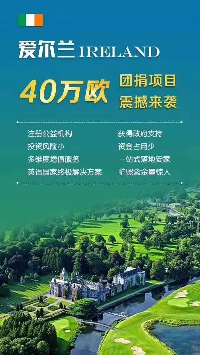 爱尔兰团捐仅需40万欧元!即可全家移民!
