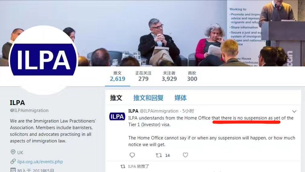 可就在12月11日,英国移民律师公会(ILPA)在向英国内政部进行查证后,官方推特发文确认投资移民目前并没有被暂停,仍然接受新申请!