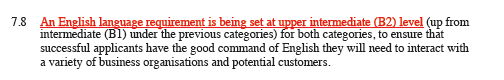 企业家移民方面,对投资人影响最大的有两部分。首先,对投资人的语言要求提高:由原先的4分(B1)提高至5.5分(B2)。这是为了确保申请人具备良好的英语水平,毕竟他们之后需要与各种商业组织和潜在客户交流。其次,就是投资额降低:由原来的投资20万镑更改为只需投资5万镑。分析认为,这对目前的中国投资人来说,是一个非常重要的利好。