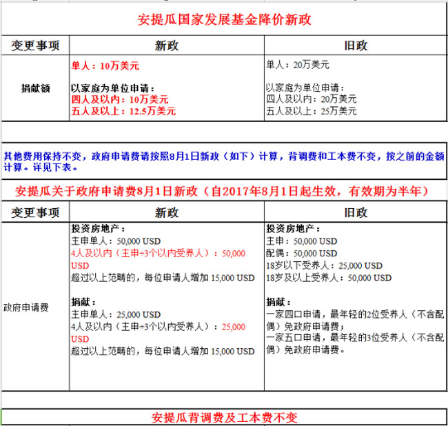 安提瓜国家发展基金捐献额新旧政策对比