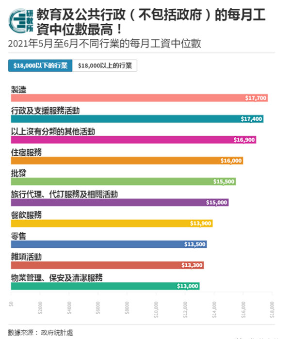 香港是全球著名的国际金融、贸易和商业服务中心,经济高度发达,拥有众多跨国公司和金融机构的总部或分支机构。根据香港政府公布2021年最新港人收入及工时统计调查结果,2021年5月至6月香港雇员每月工资中位数为18,700元。