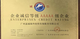 连续十年获得广东省因私出入境移民协会颁发“企业诚信等级 AAAAA 企业